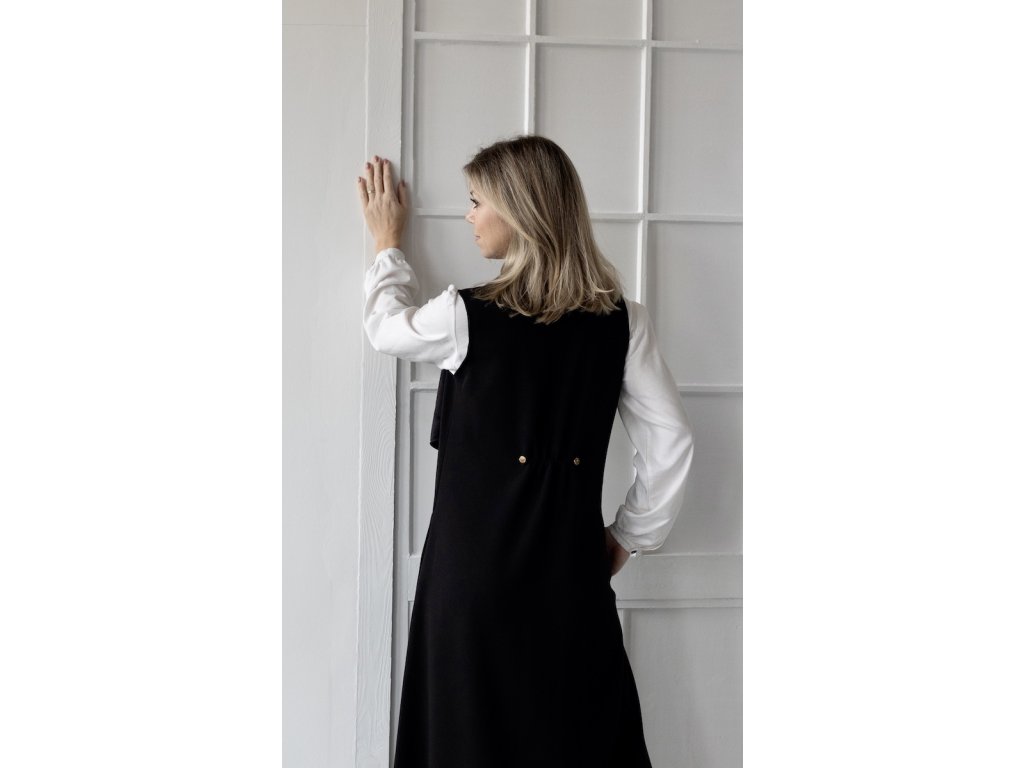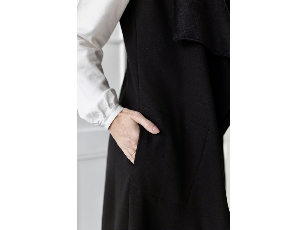 Styl a kombinace: Vestu můžete nosit volně rozevlátou nebo ji doplnit vlastním páskem a zdůraznit tak siluetu. Skvěle se kombinuje s úzkými kalhotami a jednoduchým rolákem pro minimalistický vzhled, s pletenými šaty pro elegantní vrstvení nebo s volnou košilí a džínami pro ležérní, ale promyšlený styl.