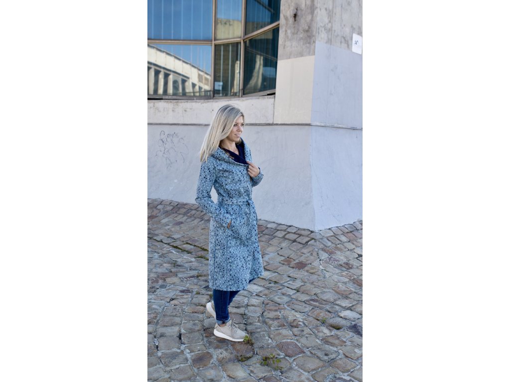 Velkorysá kapuce vás ochrání před nenadálým deštěm, a dva přední knoflíky, které si můžete našít přesně podle své postavy, dodávají kabátu unikátní přizpůsobitelnost. Vázací pásek v pase zdůrazní vaši siluetu a vytvoří lichotivou linii.