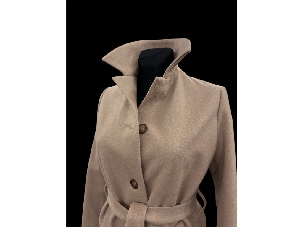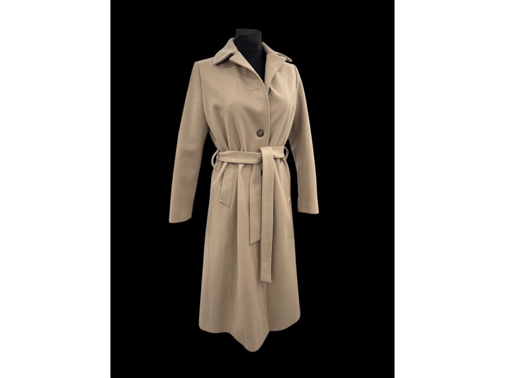 Zahalte se do jemnosti a tepla s naším dlouhým kabátem ze 100% vlny. Světle béžová barva podtrhuje jeho sofistikovanost a snadno ladí s jakýmkoli outfitem. Pásek vám umožní zdůraznit siluetu, zatímco knoflíky přidávají praktický i stylový prvek. Tento kabát je dokonalým společníkem pro chladné dny, ať už míříte do práce, nebo na procházku městem.