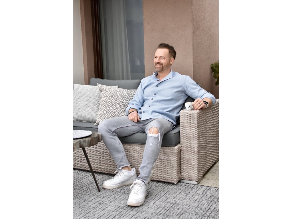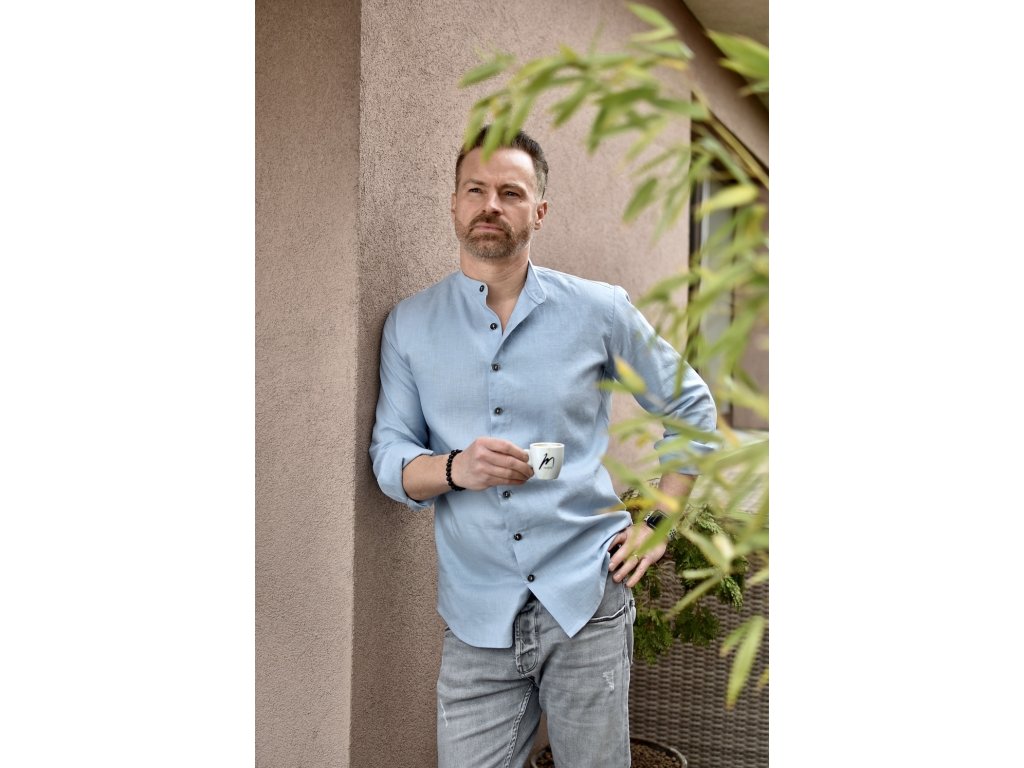 Tato pánská košile ze 100% lnu je ideální volbou pro muže, kteří hledají spojení elegance a komfortu. Díky volnějšímu střihu a stojáčku místo klasického límečku působí moderně, ale zároveň nadčasově.