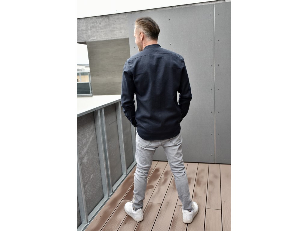 Tato pánská košile ze 100% lnu je ideální volbou pro muže, kteří hledají spojení elegance a komfortu. Díky volnějšímu střihu a stojáčku místo klasického límečku působí moderně, ale zároveň nadčasově.
