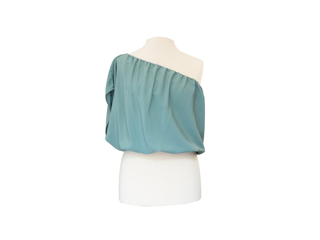 Asymetrický top na jedno rameno přináší čistou ženskost v nejpřirozenější podobě. Ušitý z prodyšného viskózové halenkoviny, která krásně splývá a chladí i během horkých dnů. Délka do pasu ladí perfektně s kalhotami s vyšším pasem – ideální volba na léto, kdy chceš vypadat upraveně a přitom se cítit volně.