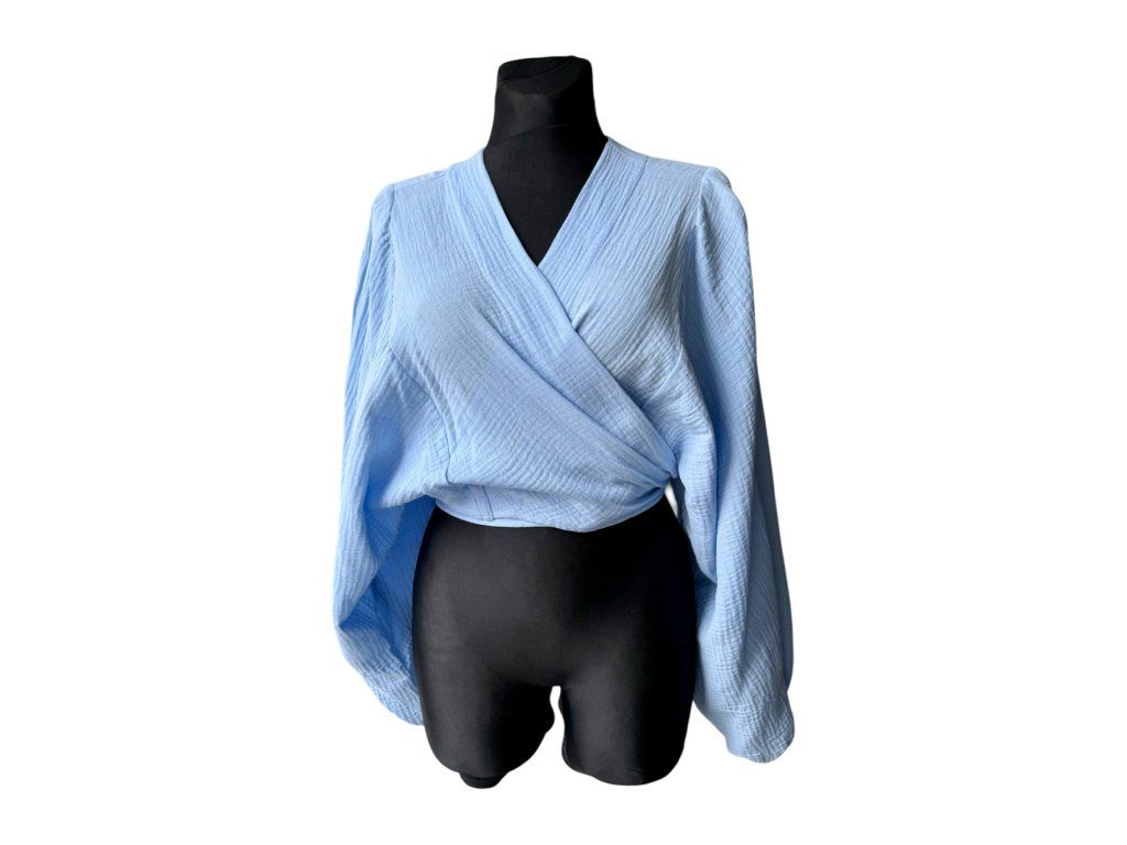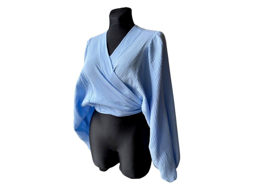 Tato halenka je navržena s důrazem na detaily – bohatě řasené rukávy ve stylu balónového objemu vytvářejí jemně dramatický efekt, zatímco střídmá silueta těla zůstává vzdušná a lichotivá. Rukávy krásně drží tvar, ale nepůsobí těžce. Materiál je 100% bavlna - mušelín.