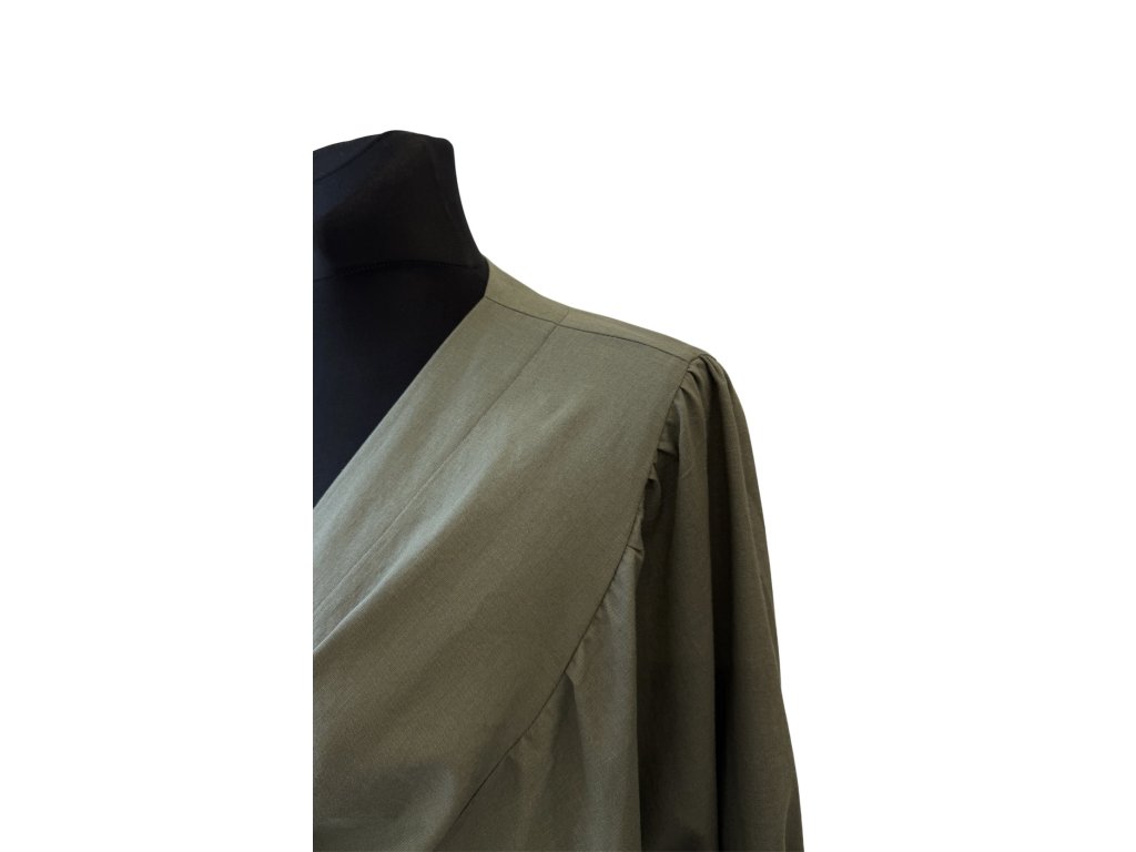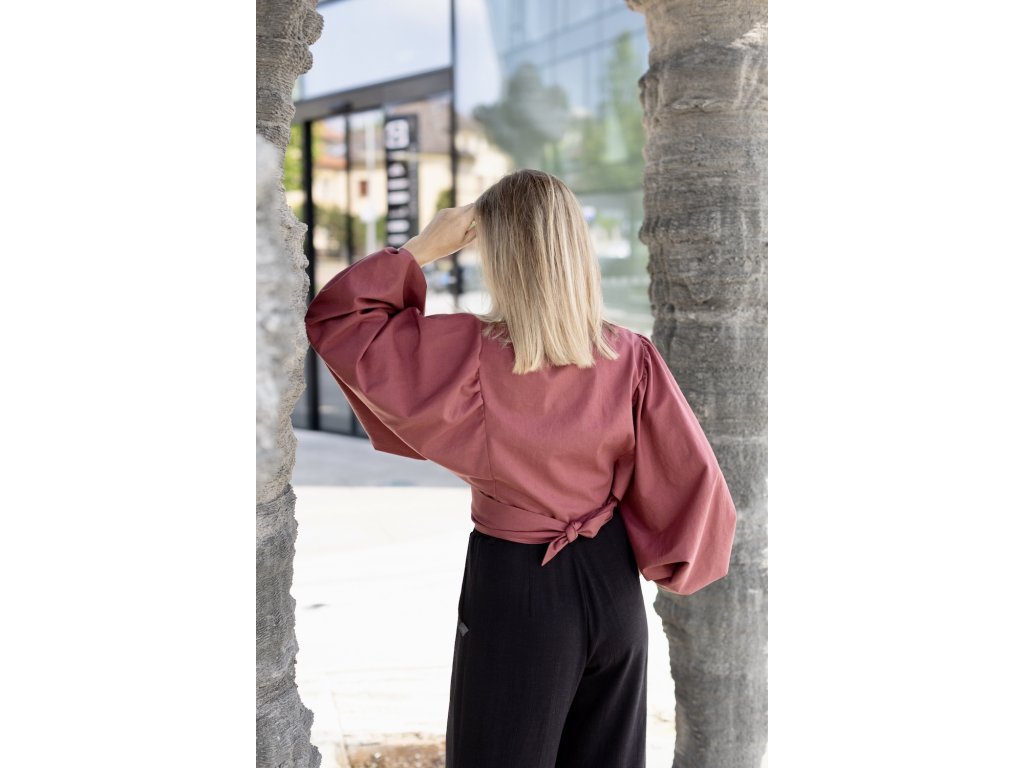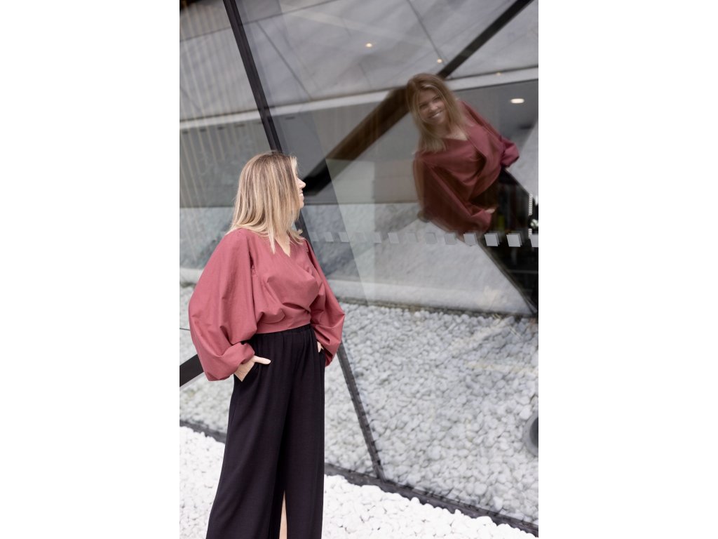 Střih je lehce volnější, bez zbytečného přilnutí, takže se příjemně nosí i v teplejších dnech. Hodí se jak k jednoduchým kalhotám, tak i k sukním s vyšším pasem – výraz rukávů dělá z obyčejného outfitu něco výjimečného.