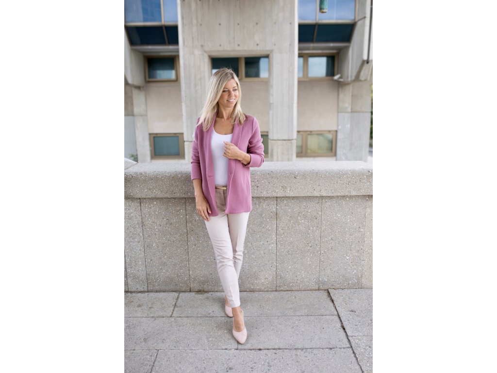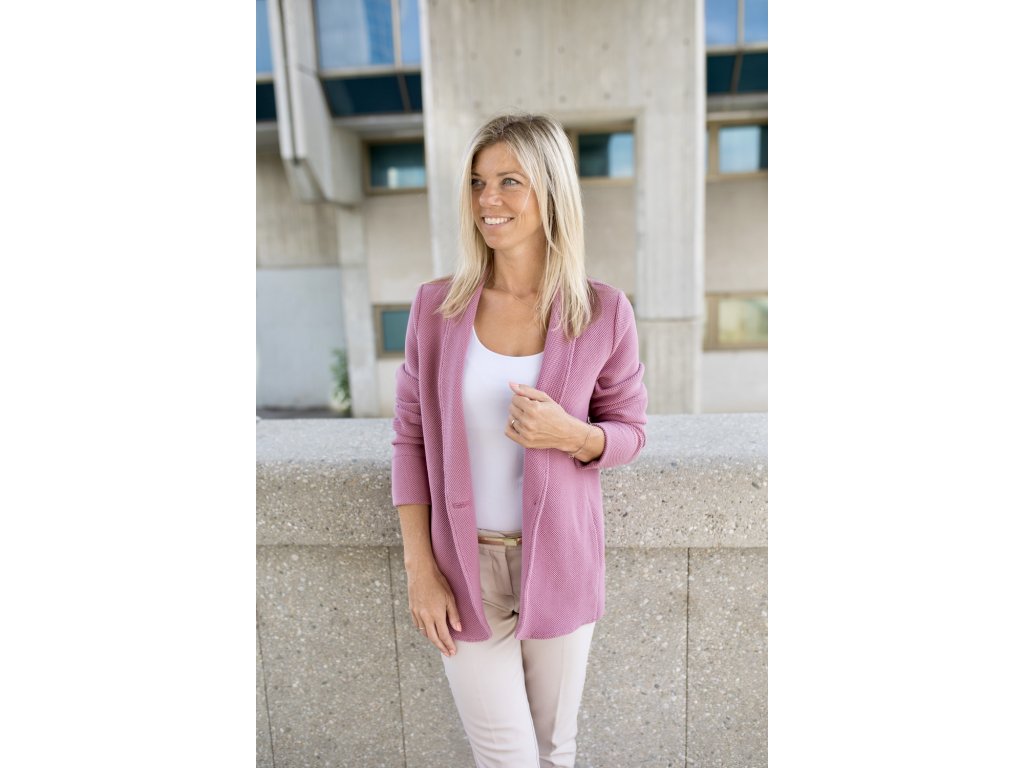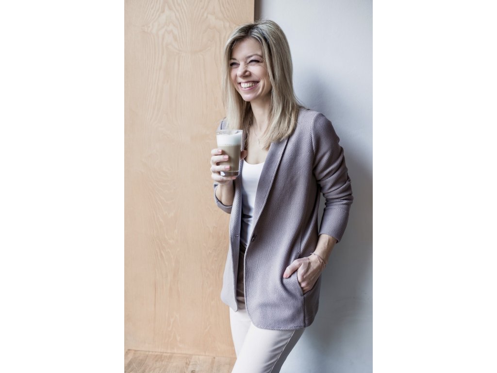 Volnější sáčko z pružného úpletu si vás získá hned při prvním obléknutí. Materiál je měkký, pružný a příjemný na dotek – vypadá jako sako, ale nosí se jako mikina.
