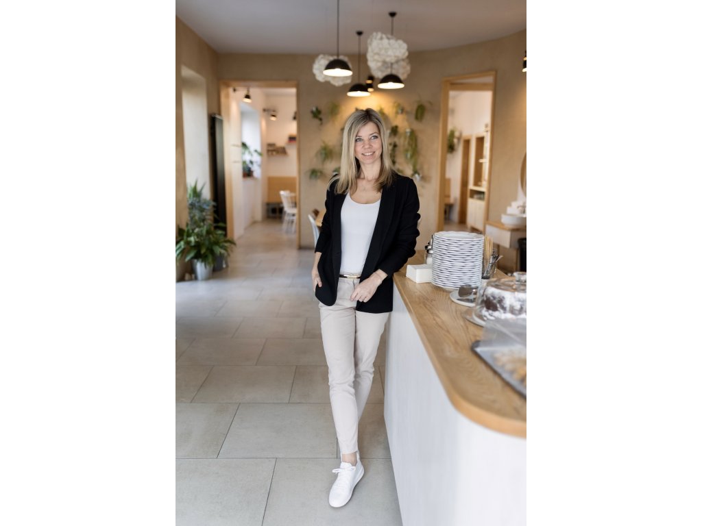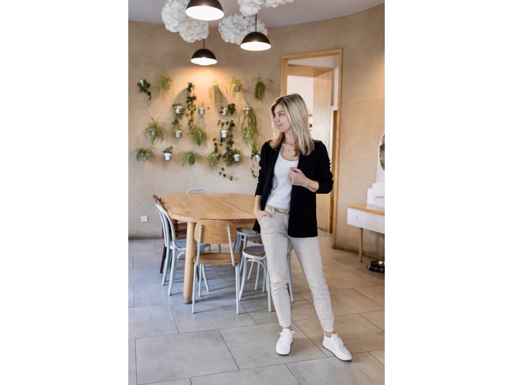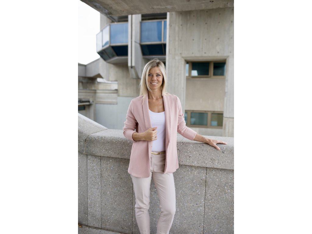 Perfektně sedí ke klasickým džínům i elegantním kalhotám. Má kapsy a zapínání na jeden knoflík, které podtrhuje jeho čistý, uvolněný vzhled.