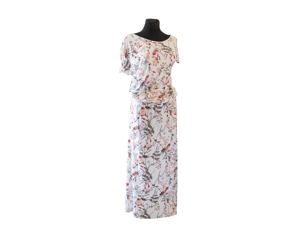 Asymetrické maxi šaty květ na bílé